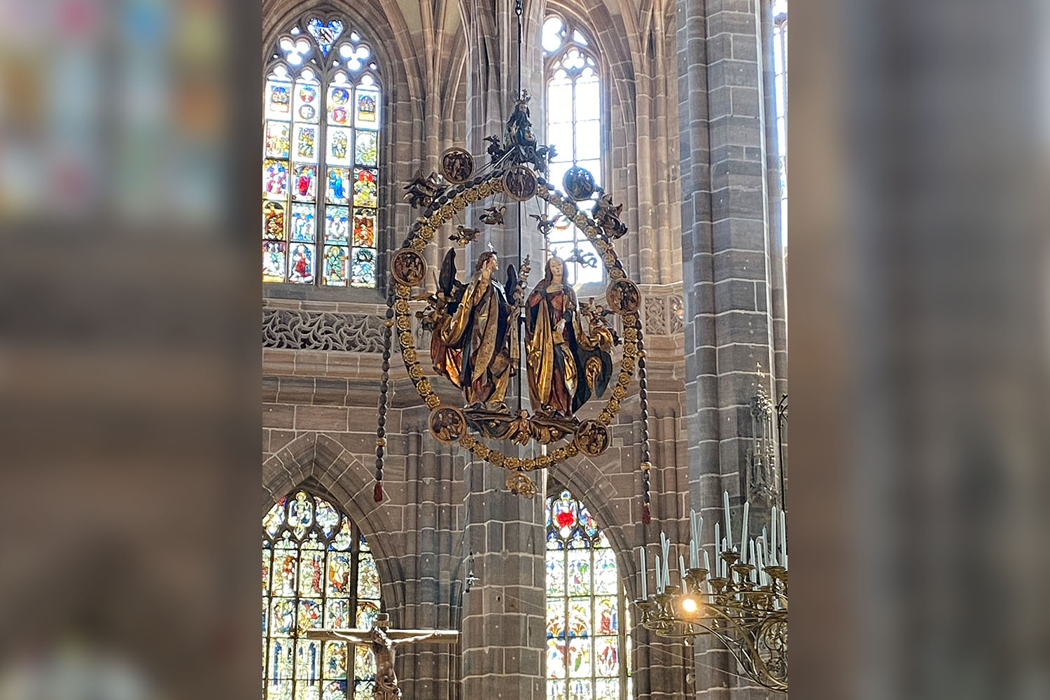 Die Lorenzkirche ist ein weithin sichtbares Wahrzeichen von Nürnberg und zählt zu den drei bedeutendsten Kirchen. Der „Stern von St. Lorenz“, eine steinerne Rosette und das kaiserliche Wappen empfangen den Besucher an der Westfassade, im Inneren finden sich kostbare Zeugnisse Nürnberger Künstler und eine der größten Orgeln der Welt.